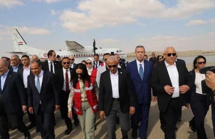 وكان في استقبال الوفد الفلسطيني لدى وصوله إلى مطار العريش الدولي، اللواء خالد مجاور محافظ شمال سيناء، حيث استعرض الجهود المصرية في استقبال وتخزين المساعدات الإنسانية الموجهة إلى قطاع غزة عبر معبر رفح البري.