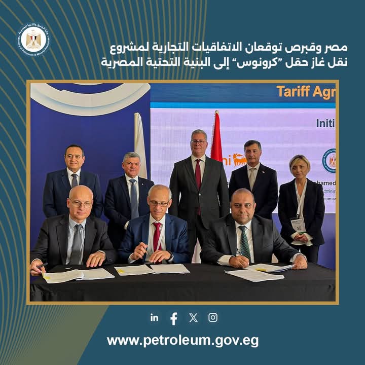 خلال مشاركته في مؤتمر ومعرض شرق البحر المتوسط للطاقة (EMC) بمدينة ليماسول القبرصية، شهد المهندس كريم بدوي وزير البترول والثروة المعدنية، ونظيره القبرصي جورج بابانستاسيو، توقيع الاتفاقيات الخاصة بمشروع نقل غاز حقل “كرونوس” القبرصي إلى مصر، لربطه بالبنية التحتية لقطاع الغاز المصري.