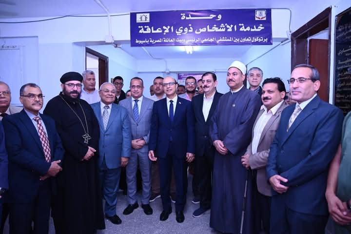 استهل الدكتور المنشاوي جولته بافتتاح وحدة خدمة الأشخاص ذوي الإعاقة، والتي أُنشئت في إطار بروتوكول التعاون بين المستشفى الجامعي الرئيسي وبيت العائلة المصرية بأسيوط، ويمثله الشيخ سيد عبدالعزيز أمين عام بيت العائلة، والقس عاموس بسطا الأمين المساعد.
