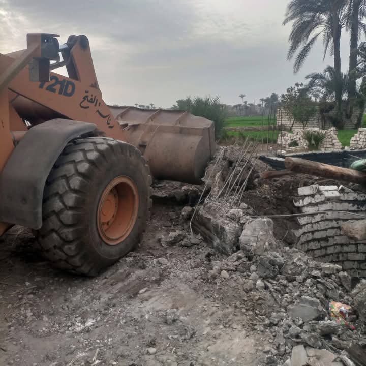 وتم تنفيذ حالة إزالة سملات خرسانيه على تعدى على ارض زراعيه على مساحة 75م تم تنفيذ عدد حالتين بالطوب الاببض البلوك بقريه العصاره التابعه للوحدة المحلية ببني مر