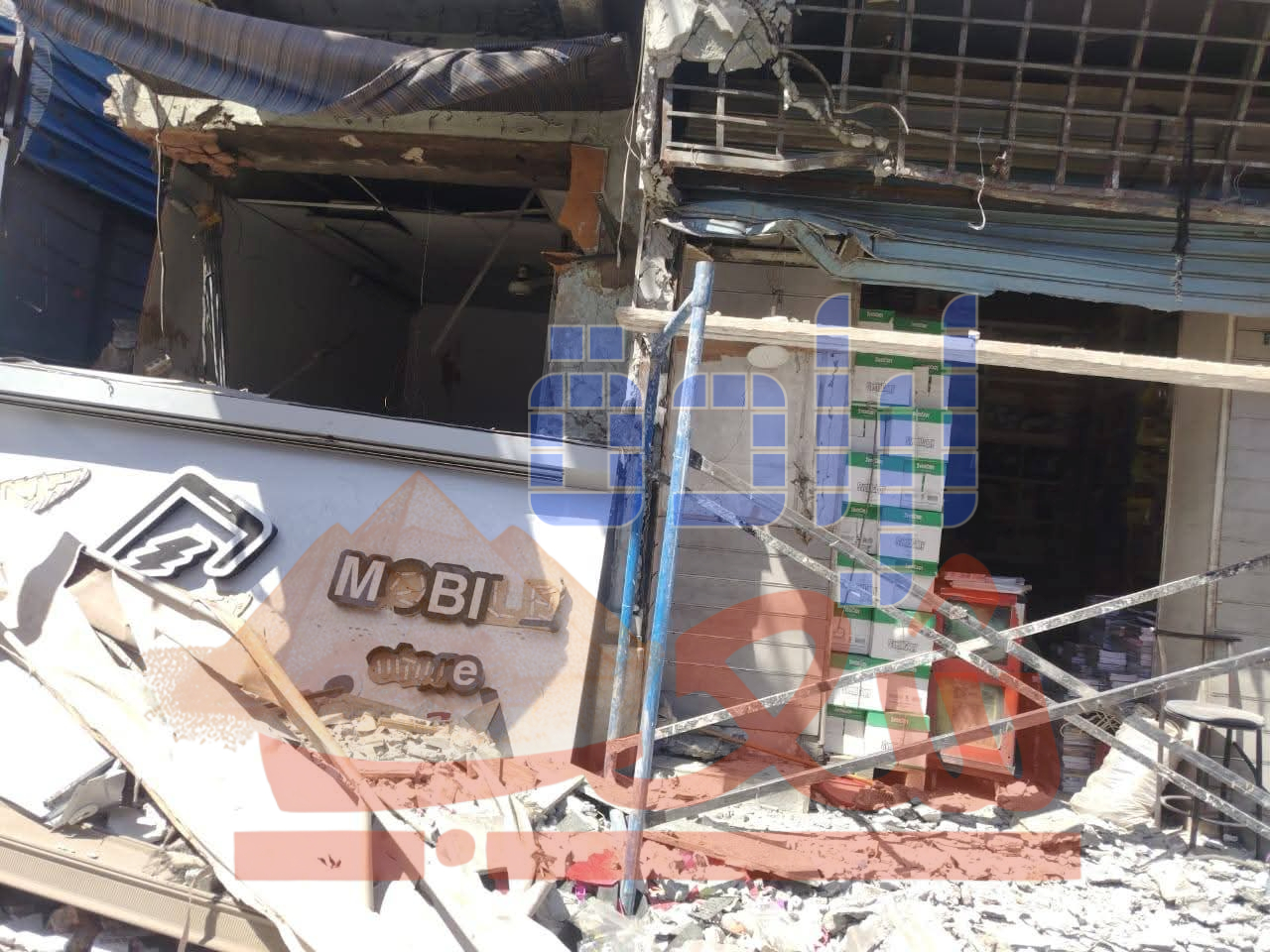 وبعد الفحص تبين تكسير واجهات محلات “خياطة، هواتف محمولة، ومكتبة”