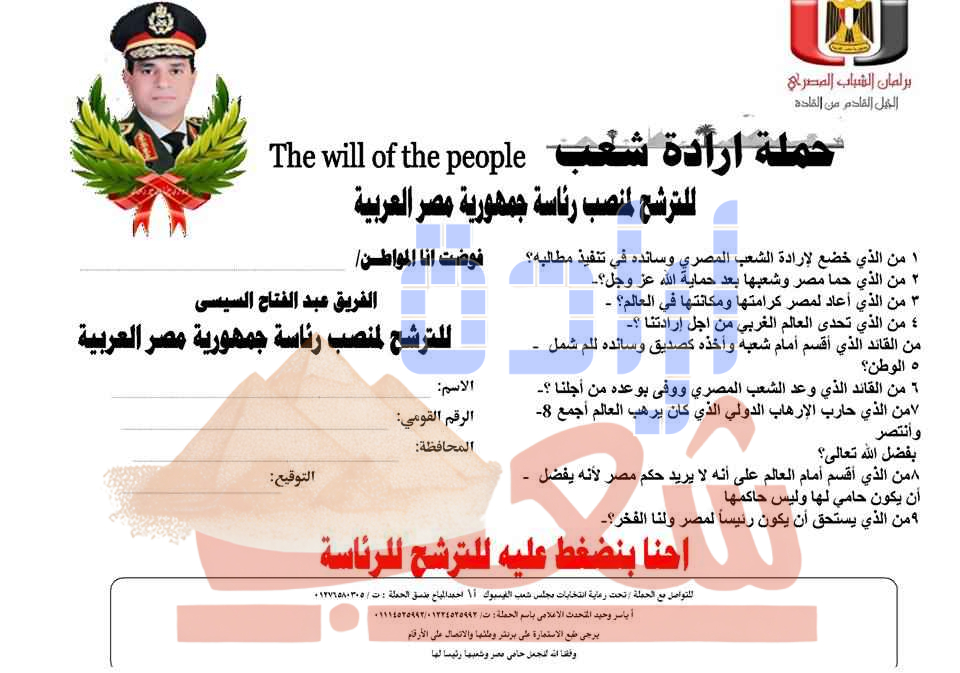 قال أ : أحمد المياح : رئيس ومؤسس” حملة ارادة شعب ” أول حملة داعمة للرئيس عبد الفتاح السيسي والتى انشأت في عام 2013