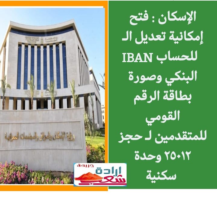 في إطار حرص وزارة الإسكان والمرافق والمجتمعات العمرانية على توفير وحدات سكنية تلبي مختلف رغبات مختلف شرائح الدخل للمواطنين ، وتيسير عملية التقديم للحصول على 25012 وحدة سكنية بالتعاون مع منصة مصر العقارية، تم فتح إمكانية تعديل الـ IBAN للحساب البنكي وصورة بطاقة الرقم القومي بكل سهولة وأمان ومن غير خطوات كثيرة بدءا من اليوم 8 ديسمبر، وذلك فى إطار حرص منصة مصر العقارية الرسمية على ضمان توفير أعلى درجات الشفافية وحماية بيانات المواطنين، حيث كانت بعض البيانات الأساسية مثل بيانات الحساب البنكي (IBAN) والمرفقات الخاصة بالبيانات الشخصية غير متاحة للتعديل في السابق، وذلك ضمن إجراءات تأمينية تهدف إلى منع أي محاولات تلاعب أو استخدام غير قانوني للبيانات،