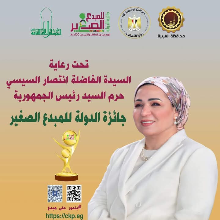 تحت رعاية السيدة انتصار السيسى قرينة رئيس الجمهورية دعا اللواء أشرف الجندى محافظ الغربية الموهوبين من النشء والشباب بالمحافظة للتقديم فى الدورة السادسة من جائزة الدولة للمبدع الصغير 2026 التى بدأت استقبال الأعمال منذ الثلاثاء 1 أكتوبر 2025 وتستمر حتى نهاية ديسمبر من نفس العاموأكد المحافظ أن جائزة الدولة للمبدع الصغير تعد حدثا ثقافيًا بارزا وتشجيعًا للمبدعين الصغار على الاستمرار فى الابتكار والإبداع كما تعكس الجائزة اهتمام مصر الكبير بالثقافة والفنون وحرصها على اكتشاف المواهب الشابة ورعايتها وتنميتها