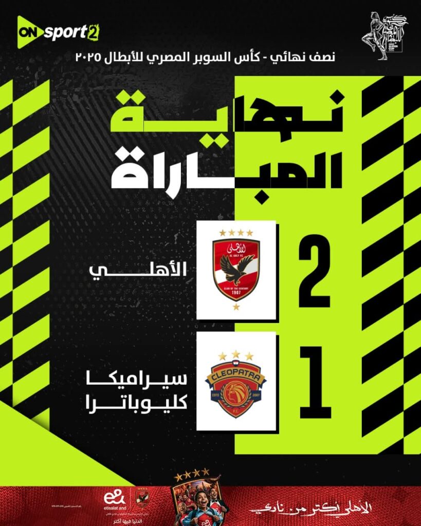 بالتخصص و للمرة الثالثة على التوالى يحقق الفريق الأول لكرة القدم بالنادى #الأهلى فوزاً غالياً و مثيراً على نظيره #سيراميكا_كليوباترا فى الدور نصف النهائى من السوبر المصرى .