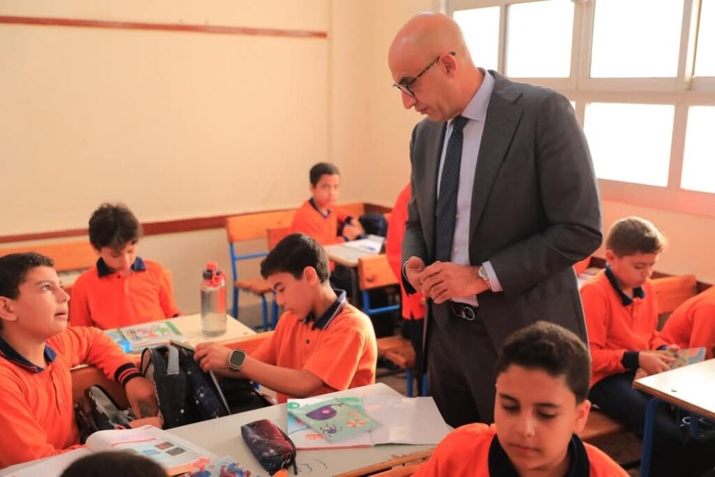 ثم توجه الوزير إلى مدرسة عمار بن ياسر الرسمية لغات التابعة لإدارة السنطة التعليمية، والتي تضم (١٢٠٠) طالب وطالبة، حيث حرص الوزير خلال الجولة على متابعة الكثافات الطلابية ونسب الحضور، والالتزام بتسليم الكتب الدراسية للطلاب، وأعمال الصيانة التي تمت بالمدرسة.