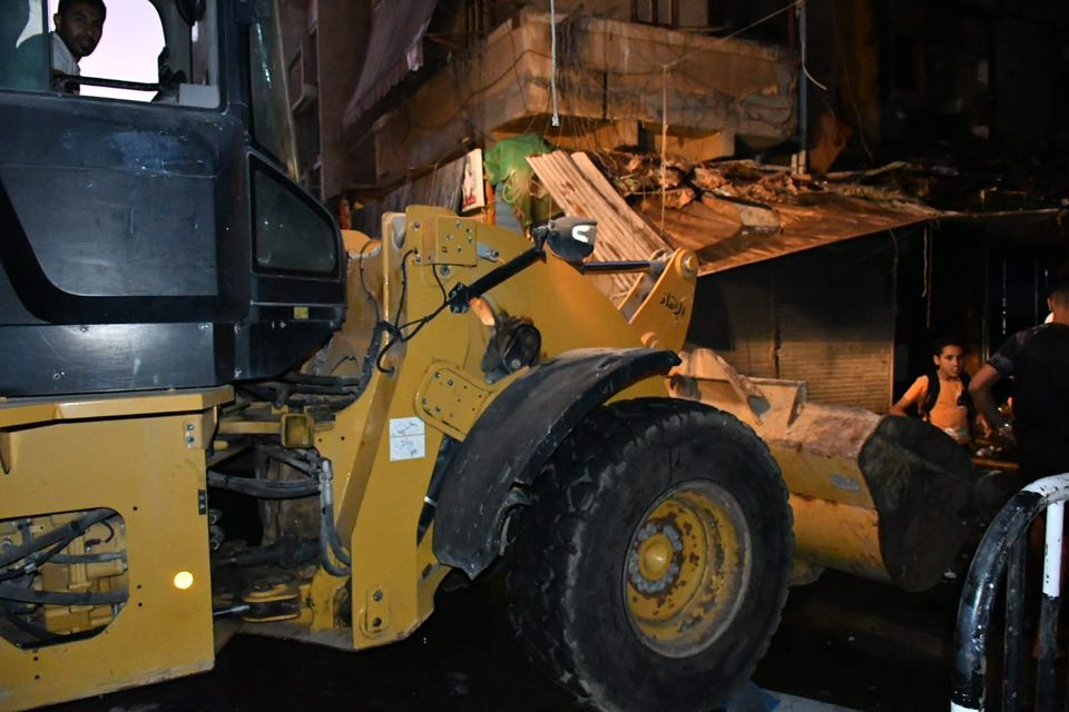 كما تم الدفع بمعدات الإنقاذ والطوارئ إلى موقع الحادث (عدد ٢ لودر، وعدد ١ قلاب) لبدء أعمال رفع آثار الحريق وإزالة مصادر الخطورة، بما يساهم في إعادة الأوضاع إلى طبيعتها في أسرع وقت. وجاري قيام جهاز الإنقاذ والطوارئ بأعمال إزالة مصادر الخطورة والأجزاء المنهارة جراء الحريق، وضمان تأمين الموقع بالكامل.