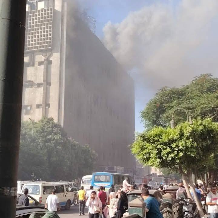 حريق أعلى مبنى سنترال رمسيس بوسط القاهرة.. والحماية المدنية تحاول إخماده..