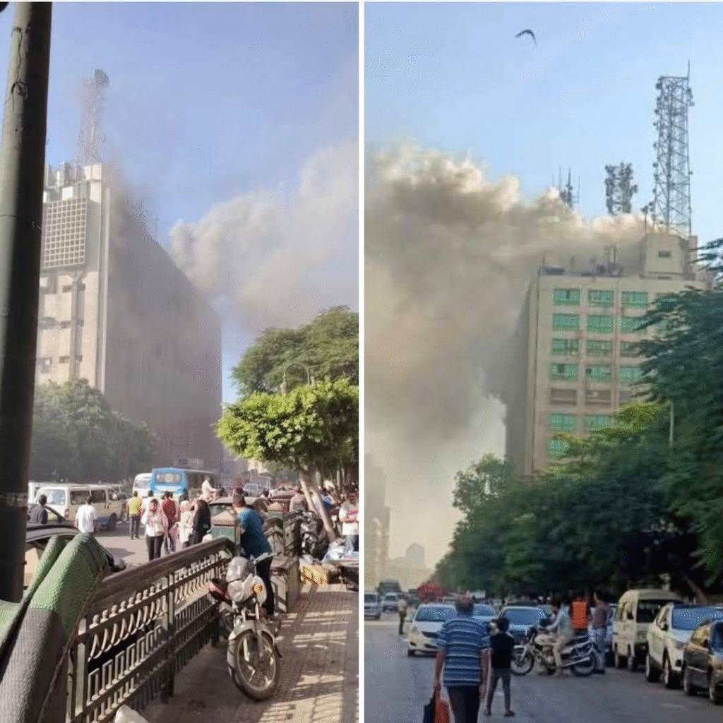 تفاصيل حريق هائل يضرب مبنى سنترال رمسيس.. إخلاء الموظفين واحتجاز آخرين داخل المكاتب