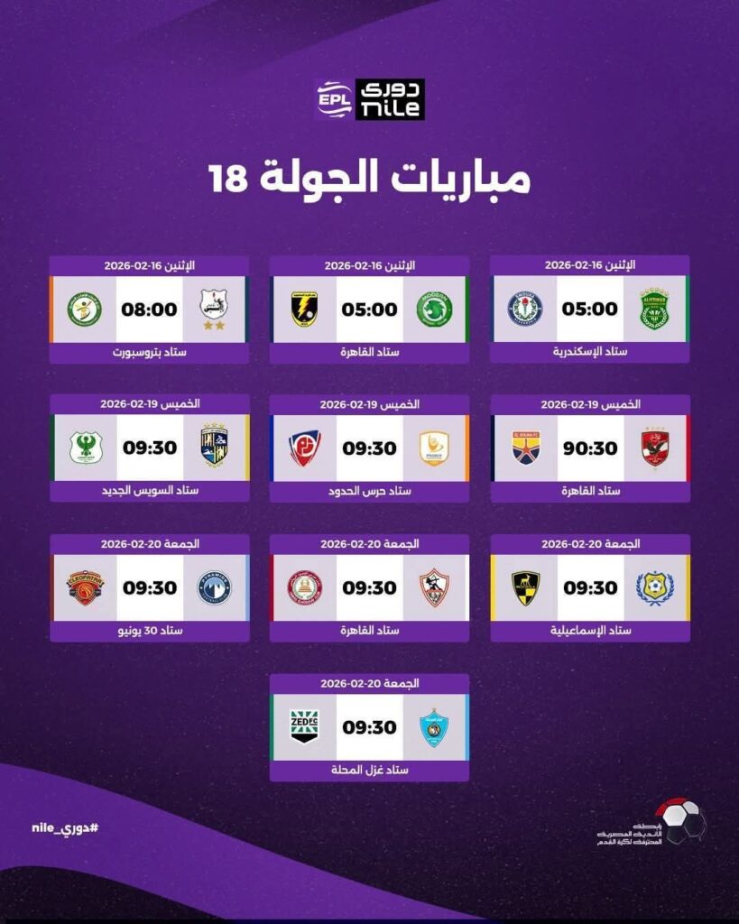 إنطلقت الآن منافسات الجولة ١٨ من بطولة #دورىـنايل لكرة القدم بهذا الموسم ٢٠٢٥ / ٢٠٢٦