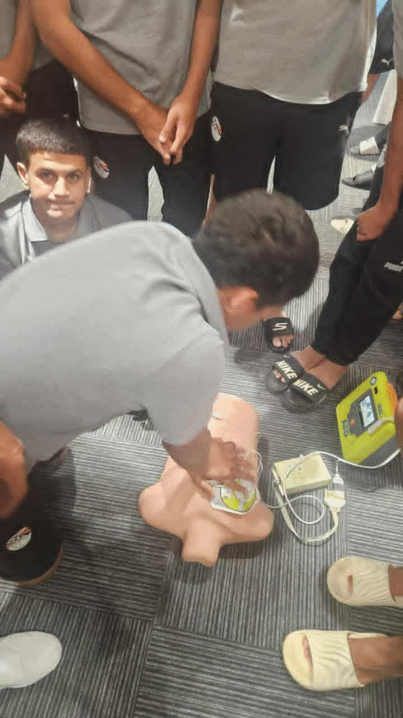 ألقى الدكتور عمرو طه، رئيس الجهاز الطبى للمنتخب الوطني تحت 17 عاما، محاضرة عن الإنعاش القلبي الرئوي في حالات التوقف المفاجئ لعضلة القلب لدى الرياضيين. وحرص الدكتور عمرو طه، على تطبيق جزء عملي مع اللاعبين بعد الانتهاء من المحاضرة النظرية. ويستعد منتخب مصر للسفر إلى قطر من أجل المشاركة في بطولة كأس العالم.