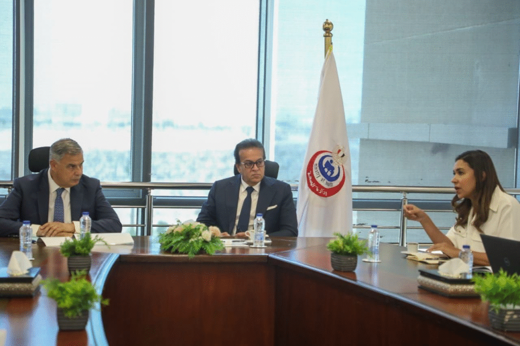 وشهد الاجتماع عرضًا تفصيليًا لمكونات المشروع، ومناقشة خطة تدريب الكوادر الطبية، وسبل تعزيز الشراكة بين القطاعين العام والخاص. ووجّه الوزير بإعداد مذكرة تفاهم ثلاثية لضمان تنفيذ المشروع وفقًا لمعايير التأمين الصحي الشامل.