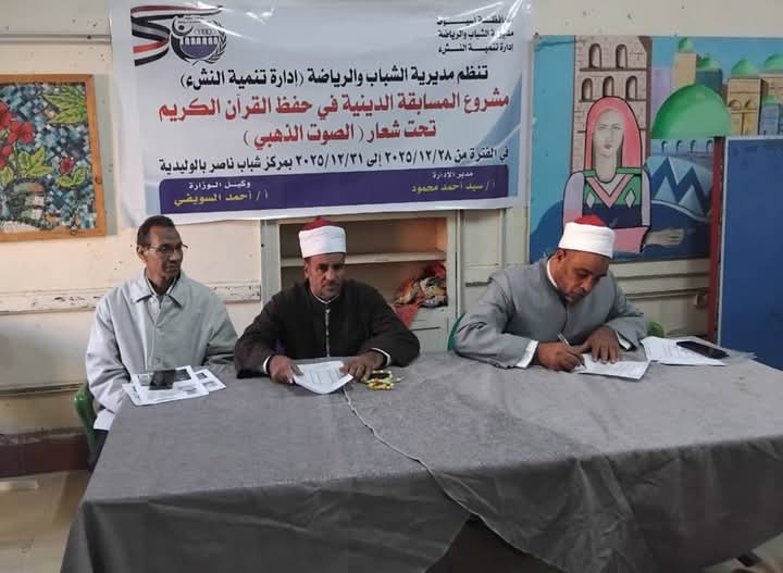 نفذت مديرية الشباب والرياضة بأسيوط” إدارة تنمية النشء “مشروع مسابقة حفظ القرآن الكريم ضمن خطة النشاط العام للإدارة ،وذلك بمركز شباب ناصر التابع لإدارة شباب اسيوط، خلال الفترة من ٢٩ إلى ٣١ من ديسمبر، بمشاركة ١٣٢ طليع وطليعه من المرحلة العمرية ٨ : ١٨ سنة، وذلك بعد إجراء التصفيات التمهيدية للمسابقة بالإدارات الفرعية