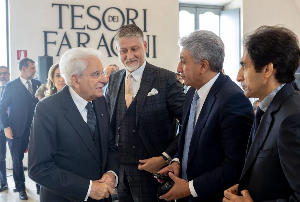 في مشهد احتفالي يعكس عمق الروابط الثقافية بين مصر وإيطاليا، افتتح فخامة الرئيس سيرجيو ماتاريلا، رئيس جمهورية إيطاليا، معرض “كنوز الفراعنة” في قاعة Scuderie del Quirinale التابعة لمؤسسة الرئاسة الإيطالية بالعاصمة روما، بحضور السيد شريف فتحي وزير السياحة والآثار المصري، والسيد أليسندرو جولي وزير الثقافة الإيطالي، والسفير بسام راضي سفير مصر لدى إيطاليا، وعدد من كبار الشخصيات والوزراء الإيطاليين ومديري المتاحف.